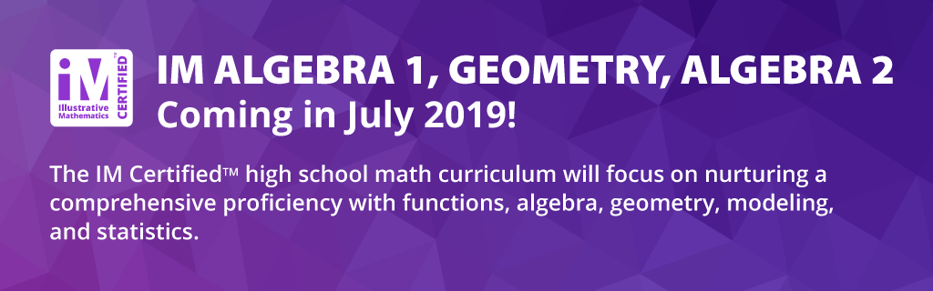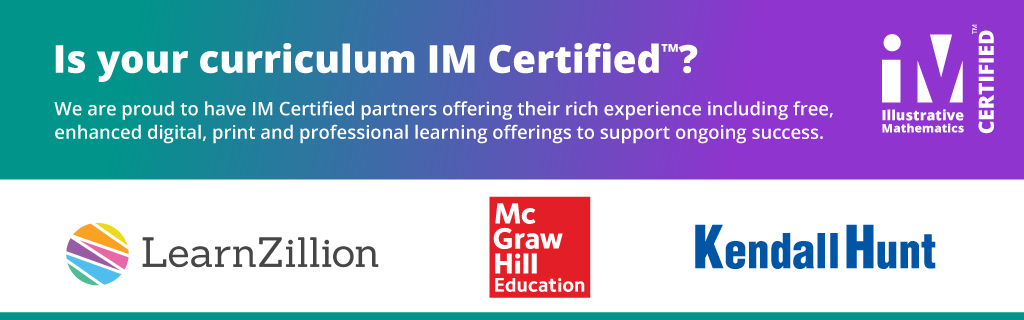 Illustrative Mathematics is a nonprofit organization founded on the belief that all students are capable of learning grade-level mathematics. Our innovative problem-based K–12 curriculum is designed to energize math classrooms and equip students with critical skills, understandings, and practices that can benefit them for a lifetime. The IM Certified® Experience leads students to this enduring math proficiency by giving educators exclusive access to engaging content, comprehensive professional learning, and an inclusive community of scholars working together to build a world where all learners know, use, and enjoy mathematics.